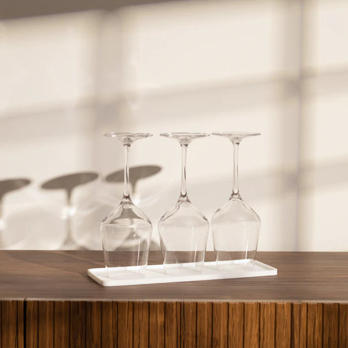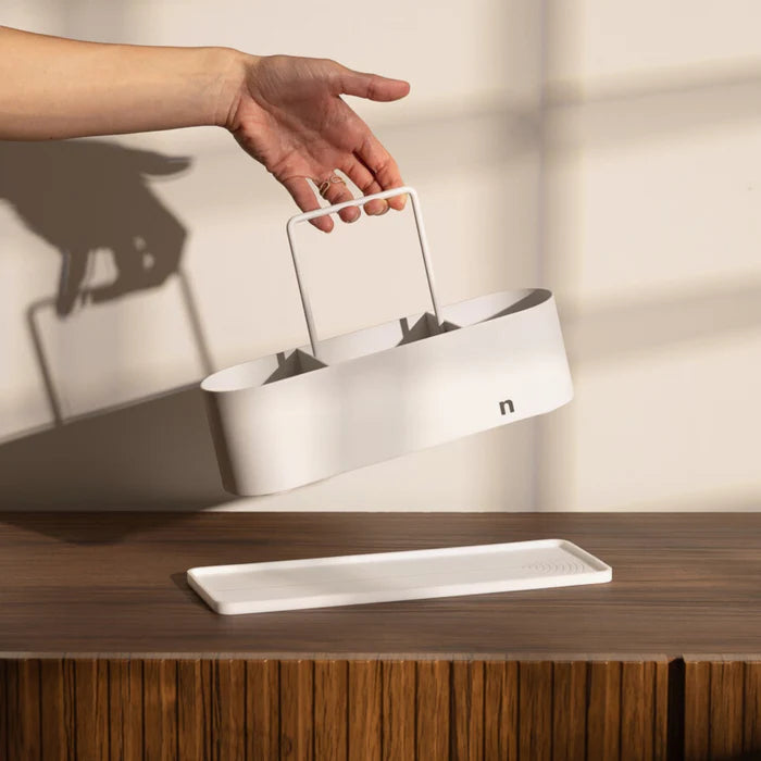 The nordesign drying mat was specially developed as a perfect complement to our organizer – for a stylishly organized and hygienic dishwashing area. Whether as a base for your organizer, dish soap, and sponges, as a drying area for glasses, or simply as a storage area: The textured surface with its subtle Nordic arched pattern reliably catches water (up to 133 ml) and its raised grooves ensure optimal ventilation and fast drying.