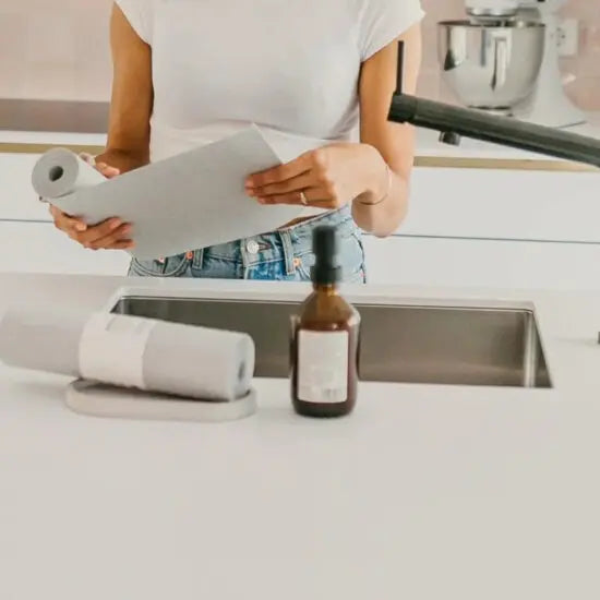 You can use the simple household roll in gray universally in the household and use it to gently clean all surfaces in your home. The 12 sponge cloths on the roll are a little thinner, but larger than the natural sponge cloths in our collection. The household roll is produced and finished in Germany. Lovingly packaged in a paper banderol, 12 sponge cloths arrive on a practical roll.