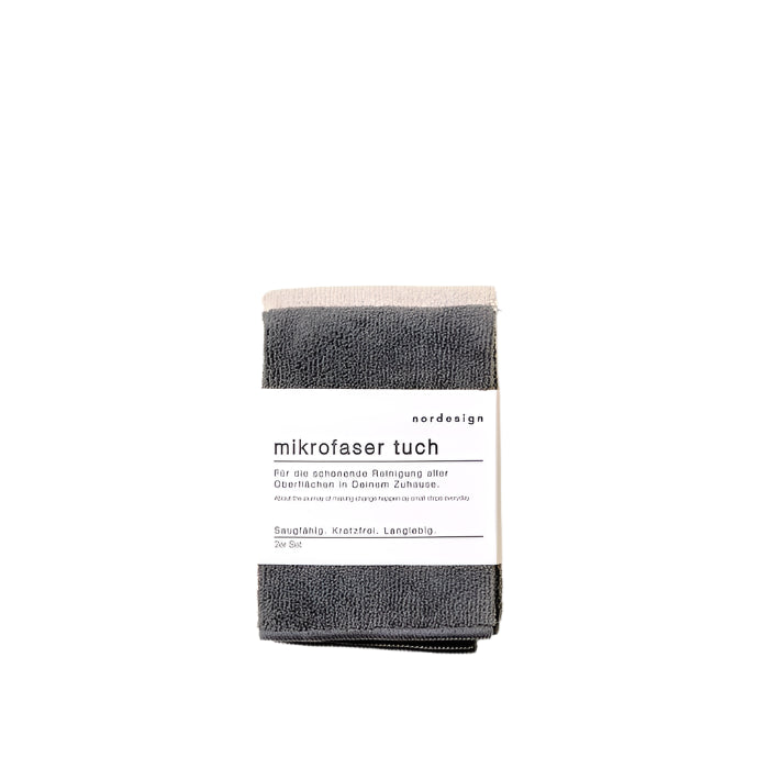 Scandinavian style even in the smallest detail: Discover the nordesign microfiber cloths in simple beige and dark gray in a practical set of 2. The ultra-fine microfibers effortlessly capture dust, dirt and grease, while the soft texture protects the surfaces in your home from scratches. The microfiber cloths are versatile and perfect for cleaning all surfaces such as mirrors, glass, car windows, windows, chrome, stainless steel and many more. Fine microfibers penetrate even the smallest recesses and actively remove even stubborn dirt - even without chemical cleaning agents. When used dry, its electrostatic properties mean it acts like a magnet that attracts and holds dust and dirt. With a practical size, they are handy and yet large enough to clean surfaces effectively. Your microfiber set reaches you lovingly packaged in a paper sleeve.