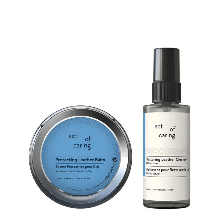 Ένα πλήρες κιτ για τη φροντίδα των πολύτιμων δερμάτινων αντικειμένων σας όπως τσάντες, αθλητικά παπούτσια, παπούτσια και έπιπλα. Περιλαμβάνει οικολογικά πιστοποιημένα καθαριστικά και ένα φυσικό βάλσαμο.
