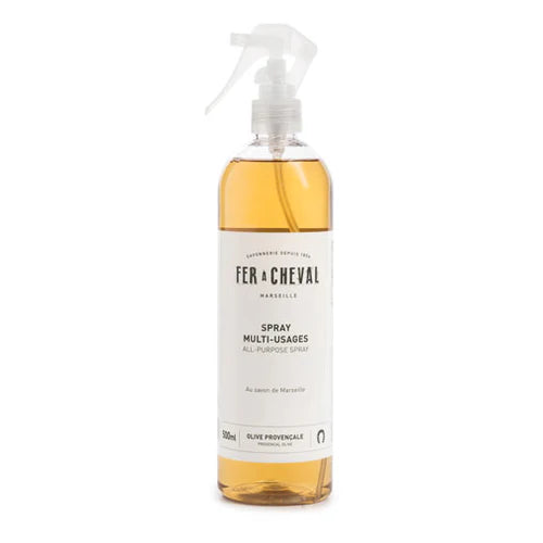 Fer à Cheval Multi-Purpose Spray, ευχάριστα αρωματισμένο με λιαστές ελιές της Προβηγκίας, είναι ιδανικό για καθημερινή χρήση για να αφαιρεί εντελώς τη βρωμιά και τη λιπαρότητα, και να γυαλίζει όλες τις πλενόμενες επιφάνειες (πάγκος, κουζίνα, ψυγείο, εστία, μπάνιο...).