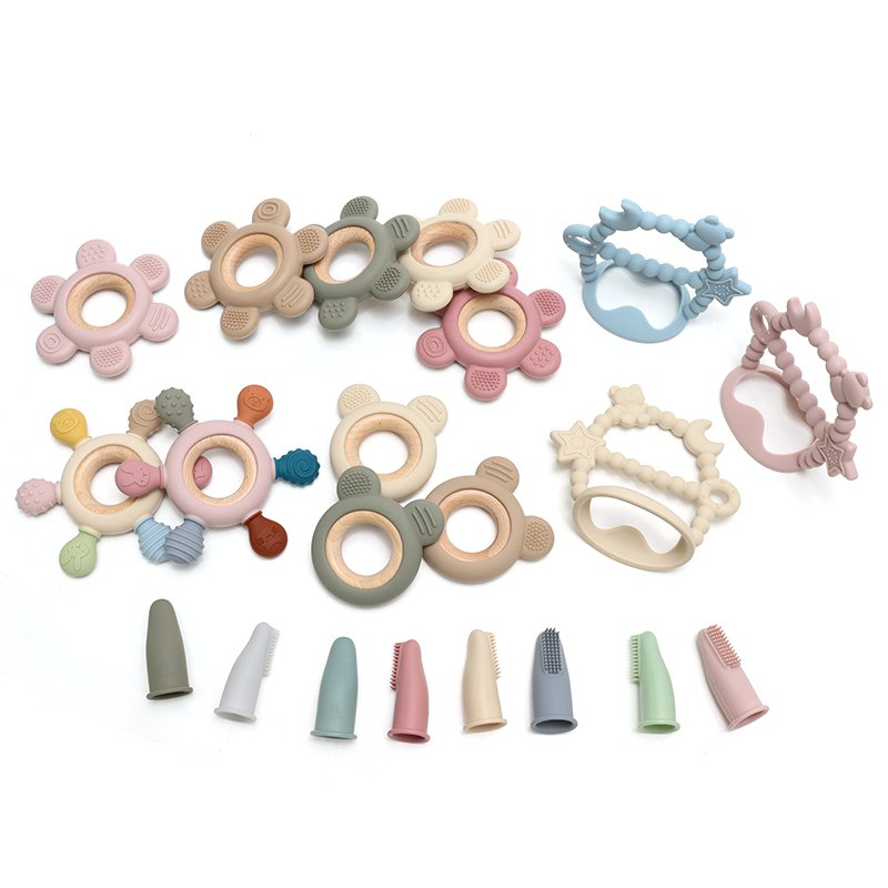 - Επιφάνεια πολλαπλών υφών — μαλάσσει απαλά τα ούλα και υποστηρίζει την αισθητηριακή ανάπτυξη