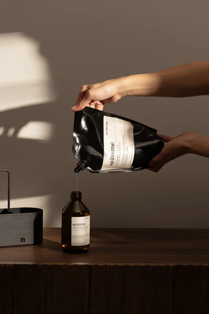 Να είστε προσεκτικοί με τον πλανήτη μας ενώ φέρνετε μινιμαλιστικό σχέδιο στο σπίτι σας. Με το ανταλλακτικό υγρού πιάτων nordesign (750ml), μπορείτε να γεμίσετε εύκολα το άδειο μπουκάλι υγρού σαπουνιού σας σε στυλ φαρμακείου έως τρεις φορές. Απολαύστε προμήθεια έως ενός έτους χωρίς να ανησυχείτε για επαναπαραγγελία. Η επαναγέμιση μας είναι πλήρως ανακυκλώσιμη και δεν περιέχει αλουμίνιο. Χρησιμοποιώντας την τσάντα επαναγέμισης, αποφεύγετε να αγοράσετε επιπλέον πλαστικά και/ή γυάλινα μπουκάλια και κάνετε το μέρος σας για να προστατεύσετε τον πλανήτη μας. Αυτή η επαναγέμιση δεν χρειάζεται να κρυφτεί σε ένα ντουλάπι; μπορείτε να την εκθέσετε ως ένα κομψό αντικείμενο σχεδίασης σε οποιαδήποτε επιφάνεια.