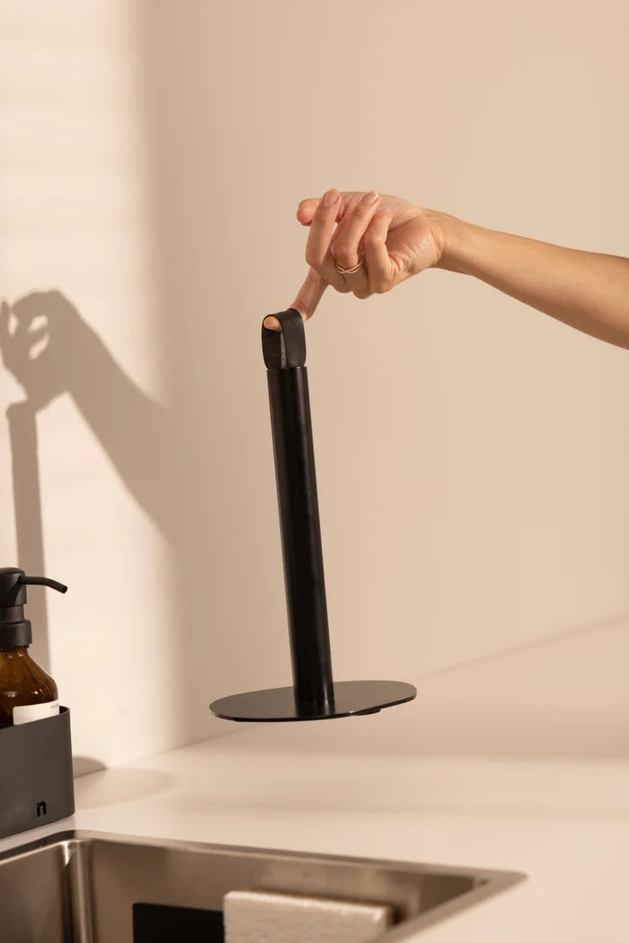Η υψηλής ποιότητας ελεύθερη βάση ρολού κουζίνας μας είναι κατασκευασμένη από μεταλλικό υλικό με επικάλυψη σκόνης και διαθέτει οργανικά σχηματισμένη βάση και στυλάτο ιμάντα από vegan δέρμα. Όπως με όλα τα προϊόντα μας, αντλήσαμε έμπνευση εδώ από τη σκανδιναβική εσωτερική διακόσμηση. Αυτό το στυλ συχνά περιλαμβάνει εσωτερικά προϊόντα με οργανικές γραμμές που θυμίζουν φυσικές μορφές. Ο μαλακός και οπτικά ελκυστικός ιμάντας μεταφοράς από vegan δέρμα σας επιτρέπει να τοποθετήσετε εύκολα τη βάση όπου χρειάζεστε. Η βάση είναι μαλακά επενδεδυμένη και με επένδυση στην κάτω πλευρά για να αποτρέπει τις γρατσουνιές στην επιφάνεια της κουζίνας σας. Με αυτόν τον συνδυασμό μινιμαλισμού και λειτουργικότητας, θέτουμε νέα πρότυπα για σύγχρονες κουζίνες.